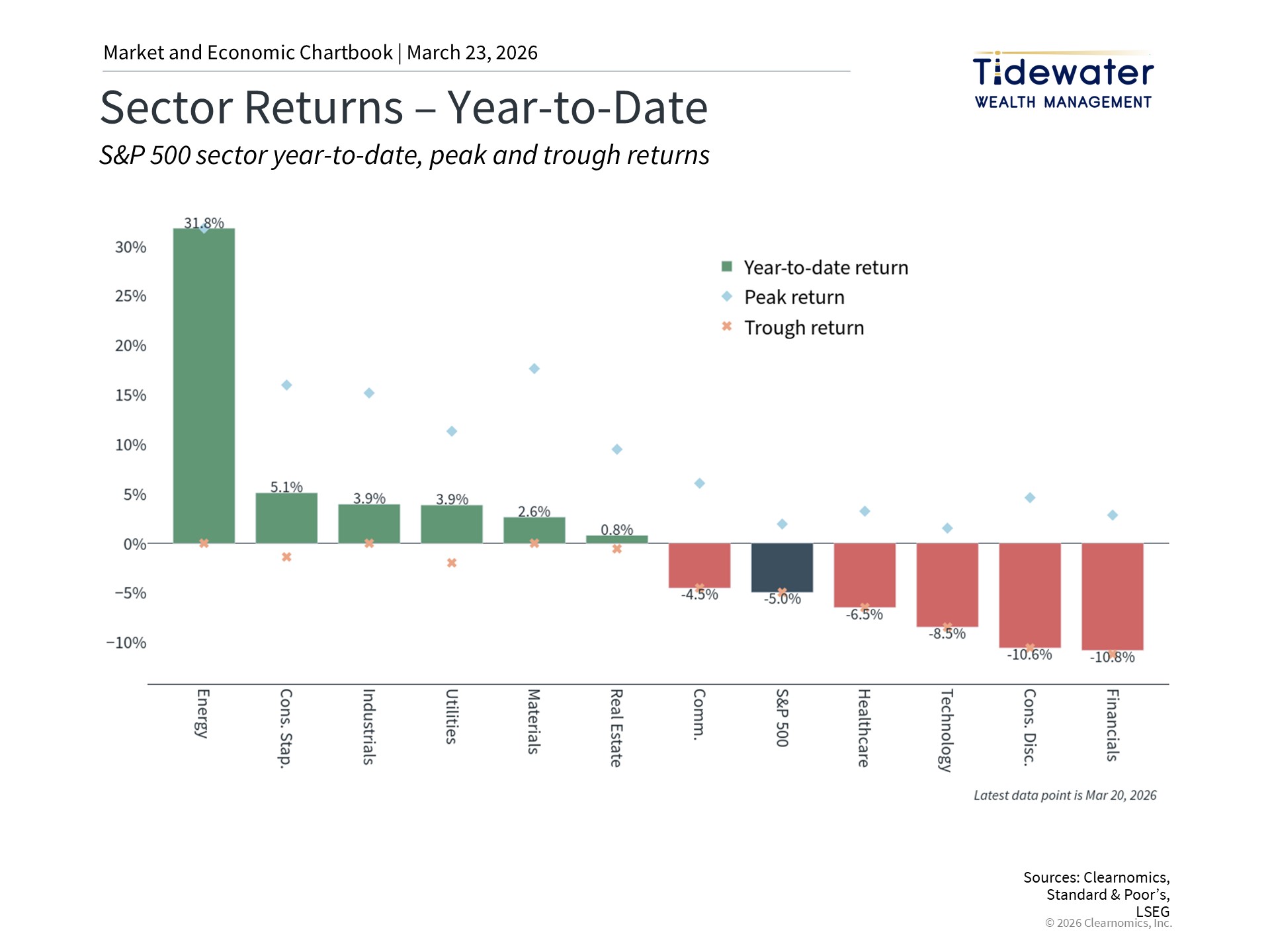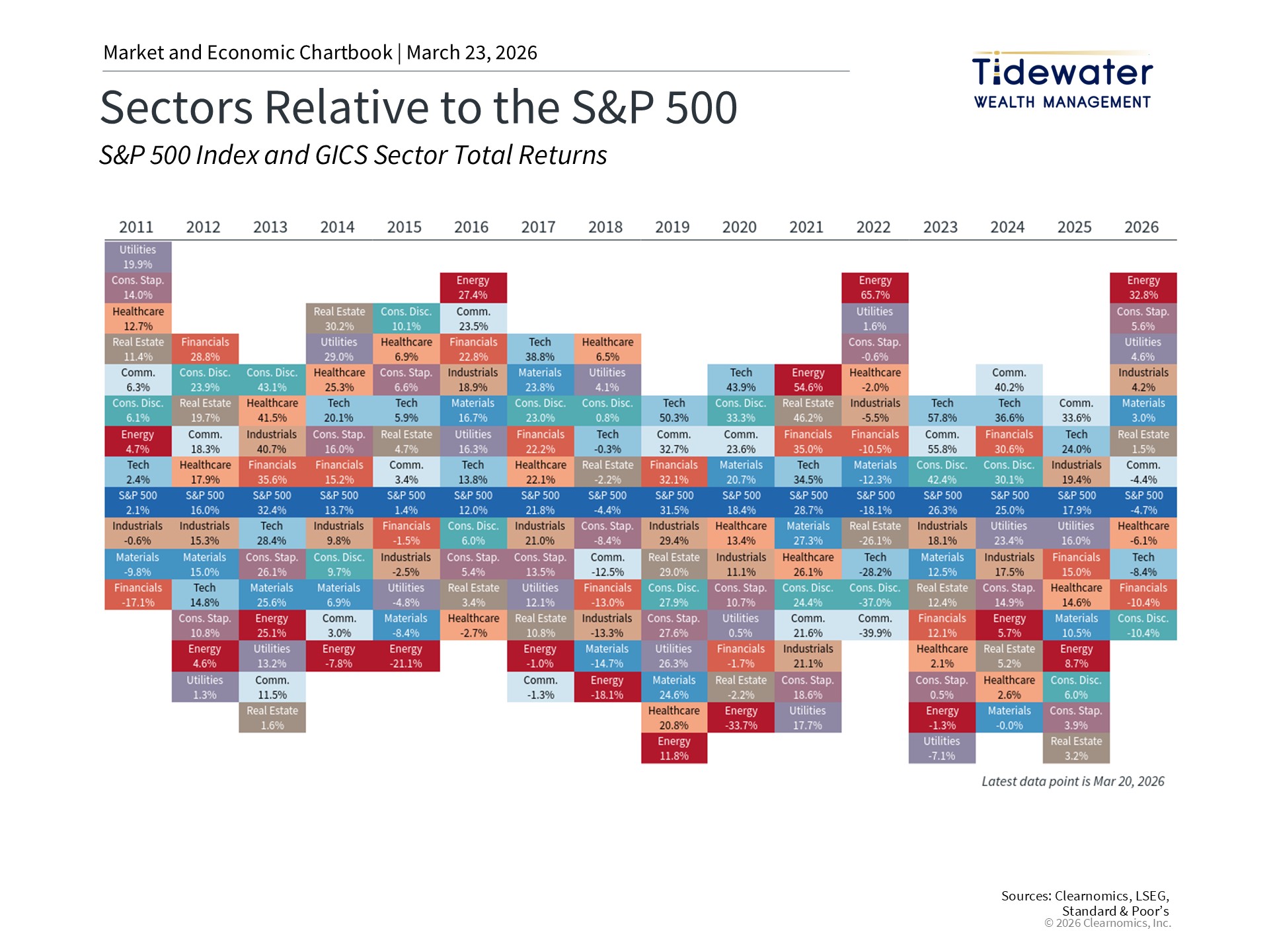 A well-diversified portfolio — one that includes growth-oriented sectors like technology, economically sensitive sectors like energy, and defensive sectors like utilities and consumer staples — is better equipped to handle different market environments. Rather than trying to guess which sector will perform best next (which is just as difficult and counterproductive as trying to time the overall market), investors are better served by maintaining a balanced portfolio that can capture gains from multiple areas of the economy while managing overall risk.